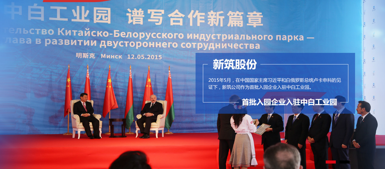 2015年5月,中国国家主席习近平在白俄罗斯首都明斯克同其总统卢卡申科举行会谈,确定了共建中白工业园作为战略合作的重点项目,将园区项目打造成丝绸之路经济带上的明珠和双方互利合作的典范。在习主席和卢卡申科总统的见证下,新筑路桥公司作为首批入园企业正式入驻中白工业园。