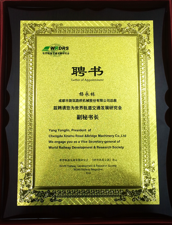 大会期间,会议延续往届惯例,对过去一年为我国轨道交通发展做出突出贡献的单位、集体和个人颁发了“《世界轨道交通》杂志封面人物奖”、“技术创新奖”等奖项。其中,公司总裁杨永林先生受聘为世界轨道交通发展研究会副秘书长,公司嵌入式连续支撑无砟轨道系统继2015年后再次荣获技术创新奖。
