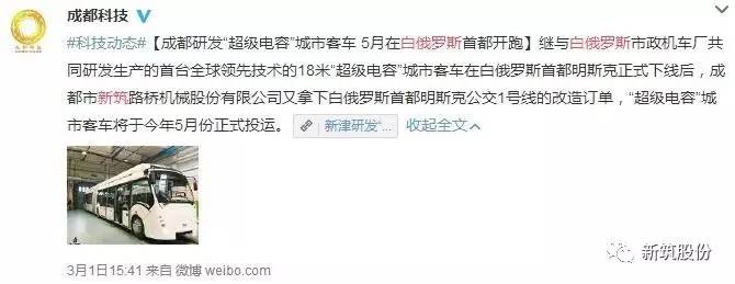 2月16日由新筑股份公司提供核心技术的首台18米超级电容城市客车在白俄罗斯首都明斯克正式下线,不知近几日大家是否也像小编一样,从各大媒体看到了这条新闻报道~