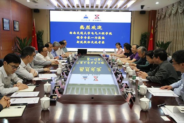 2021年4月30日下午,西南交通大学磁浮专家连级三教授、原全国政协常委钮小明、电气工程学院院长陈维荣、党委书记罗乾超、国家轨道交通电气化与自动化工程中心主任高仕斌、电气工程学院副院长解绍锋、何晓琼、陈民武、副书记谢力等到访新筑股份,就深化校企合作等事宜进行了深入交流。