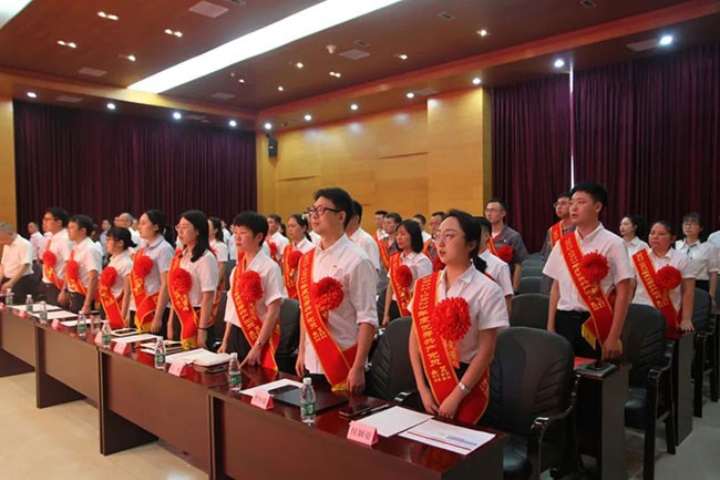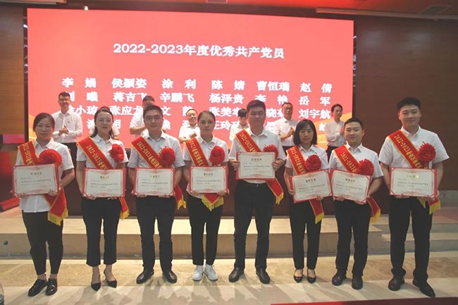 6月30日下午,新筑股份召开庆祝中国共产党成立102周年2022-2023年度“两优一先”表彰大会暨党委书记讲主题教育专题党课。会议由党委副书记、财务总监贾秀英主持,公司党委委员、领导班子成员、总助级人员,中层管理人员,川发磁浮、新筑交科、长客新筑领导班子成员,各级党组织负责人、主要党务工作人员,受表彰的“两优一先”对象等65人参加会议。