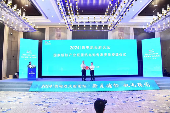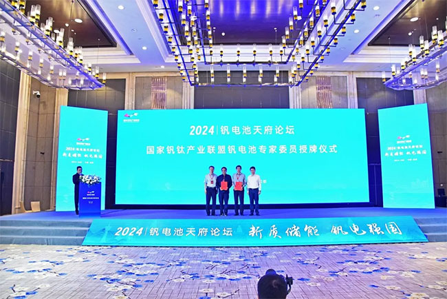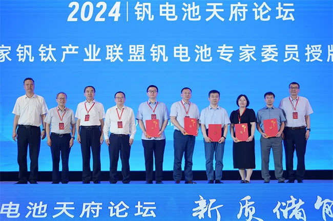 论坛上,还举行国家钒钛产业联盟钒电池专家委员会授牌仪式,58名专家成为专家委员会成员,国家钒钛产业联盟钒电池专业委员会正式成立,标志着我国钒电池产业进入了一个全新的发展阶段,进一步加深行业内的交流、合作和赋能。