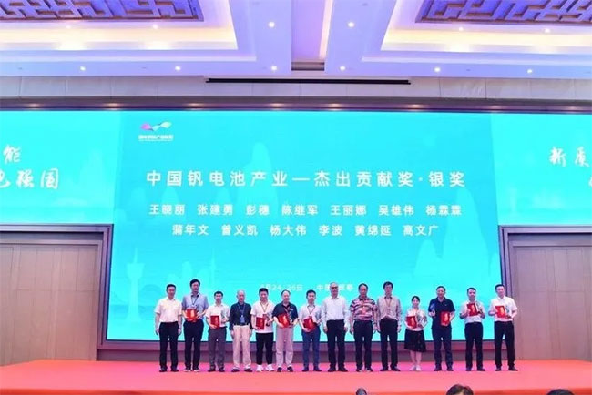 为王晓丽、张建勇、彭穗、陈继军、王丽娜、吴雄伟、杨霖霖、蒲年文、曾义凯、杨大伟、李波、黄绵延、高文广颁发杰出贡献奖·银奖。表彰他们为把万亿级规模的钒电池产业愿景变成钒电人最美风景、实现商业化运作、做大做强作出的重要贡献。
