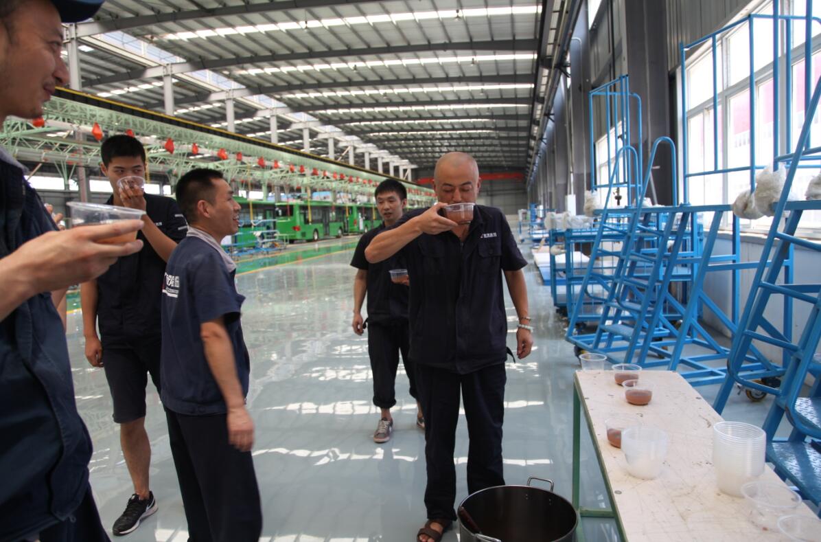 夏日炎炎,气温日渐攀升,为做好防暑降温工作,保障生产一线员工的身体健康,确保员工全身心投入到安全生产工作中,日前,公司工会开展了以“关爱职工、夏送清凉”为主题的送清凉系列活动。8月19日至25日,公司工会每天组织熬制绿豆汤送至各车间,让一线员工在高温酷暑日喝上新鲜可口的绿豆汤,为他们带去丝丝清凉和滴滴关爱。